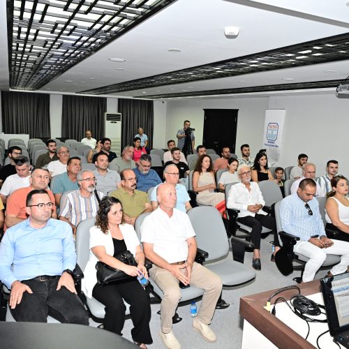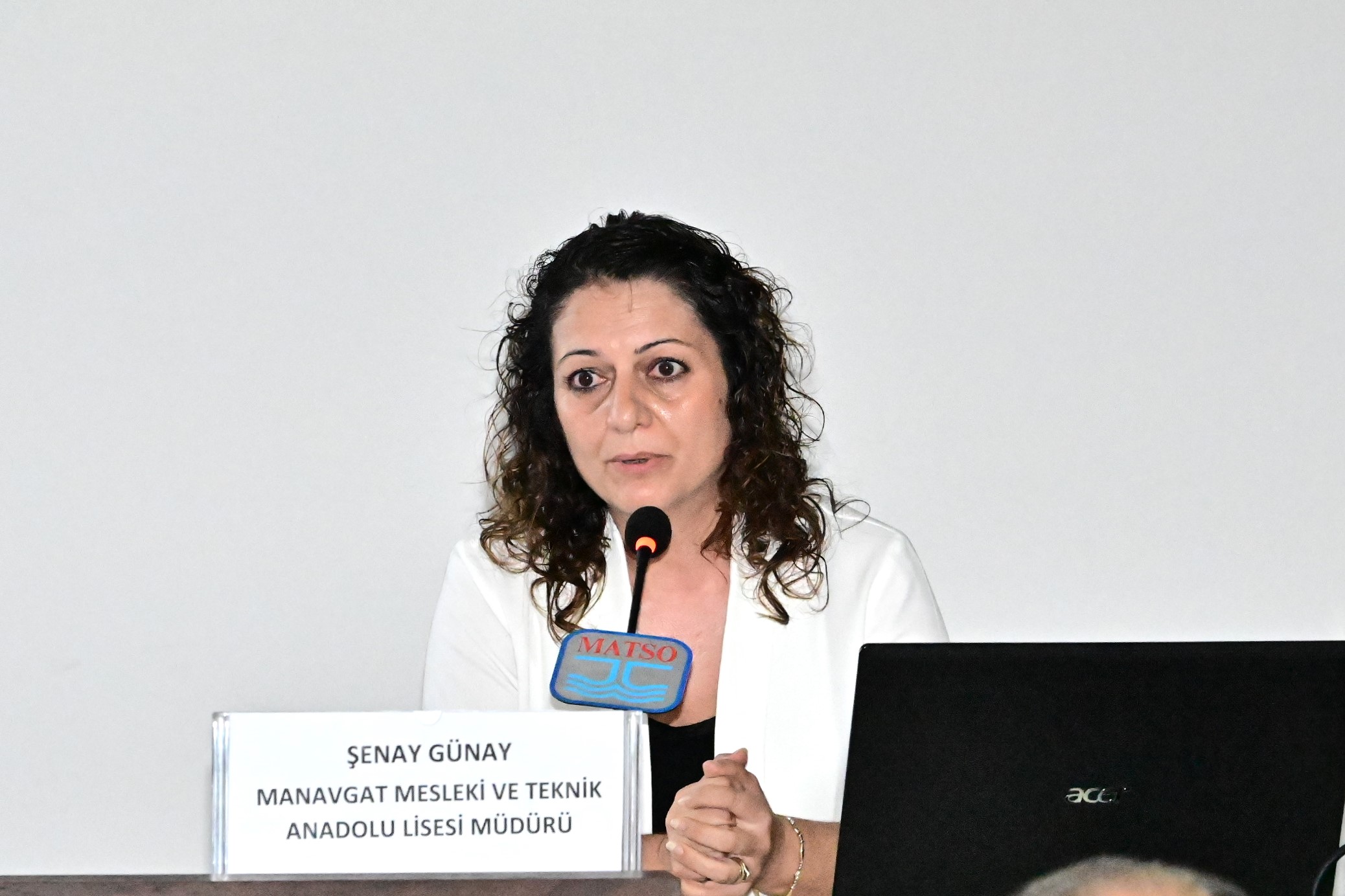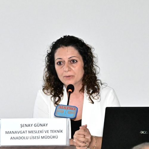 Manavgat Mesleki ve Teknik Anadolu Lisesi Müdürü Şenay Günay ise okul ile ilgili bir sunum yaparak okulun fiziki durumu, atölyeleri ve donanımı ile ilgili bilgiler verdi.