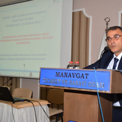 “Bugün Manavgat’ın nüfusu 11 ilden büyük, şirket kuruluşları açısından 81 ilin 53’ünden daha fazla şirket kuruluşuna sahip, sigortalı işçi çalıştıran iş yeri sayısı 81’ilin 45’inden fazla. İşyerlerinin yaklaşık % 95’i de KOBİ vasfında. Manavgat dinamik, proje üretecek, girişimcilik eğitimi alıp iş kuracak, iş geliştirecek, yatırım yapacak, istihdam sağlayacak. Biz daha fazla üretmeye ve daha fazla kazandırmaya hazırız; ama devletimizden de destek bekliyoruz, KOSGEB de devletimizin bir kurumu, hizmet ve destek açısından Manavgat’ı biraz daha fazla görün.