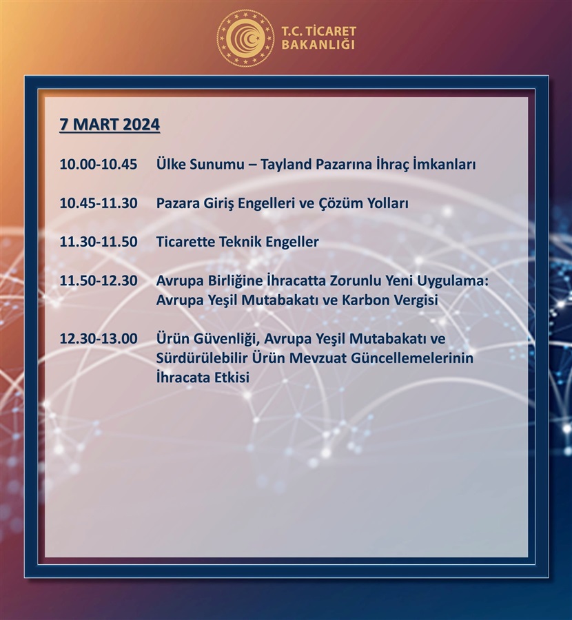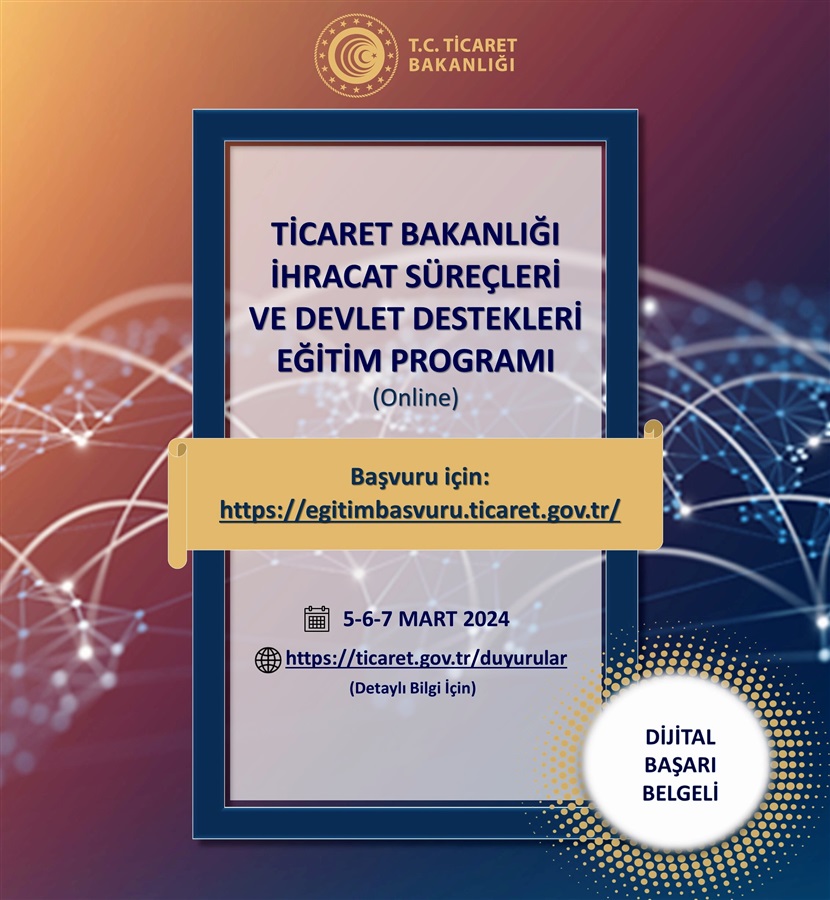 Ticaret Bakanlığı İhracat Süreçleri ve Devlet Destekleri Eğitim Programı 5-6-7 Mart 2024