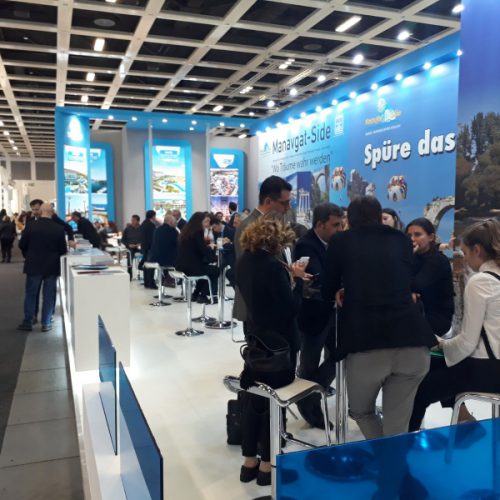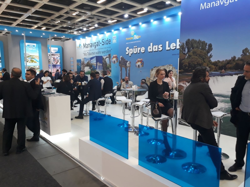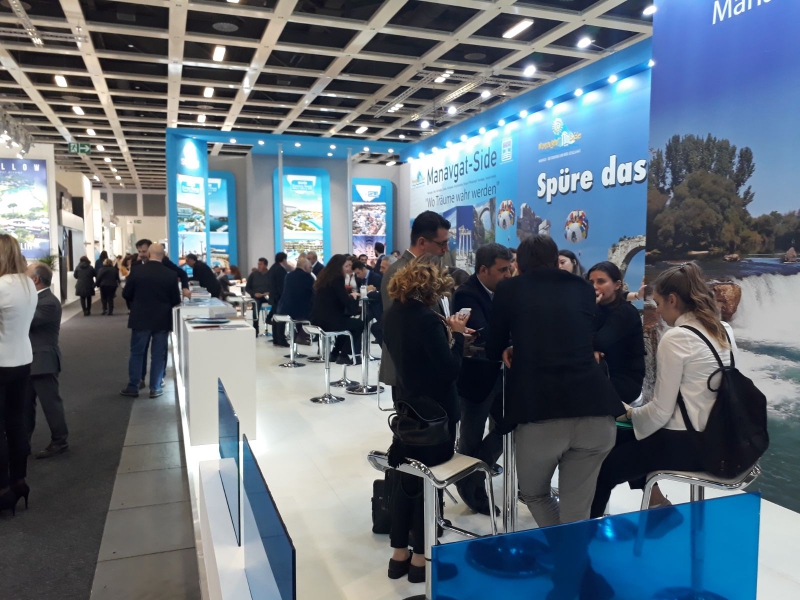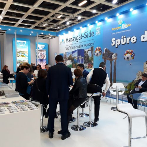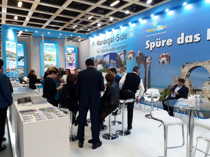 Manavgat-Side turizm destinasyonun tanıtıldığı fuarda Manavgat standı ziyaretçi akınına uğruyor.  Manavgat-Side standını Dışişleri Bakanı Mevlüt Çavuşoğlu, başta olmak üzere Antalya protokolü, bölgemiz otelcileri ve turizm profesyonelleri ile Almanya başta olmak üzere Avrupa’nın değişik ülkelerinden tur operatörleri ziyaret etti.