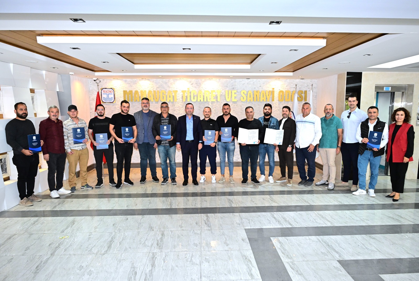 Manavgat Ticaret ve Sanayi Odası’nda(MATSO) Motorlu Kara Taşıtları Alım-Satım Sorumlusu (Galericilik) Seviye 5 Mesleki Yeterlilik sınavında başarılı olanlara belgeleri takdim edildi.