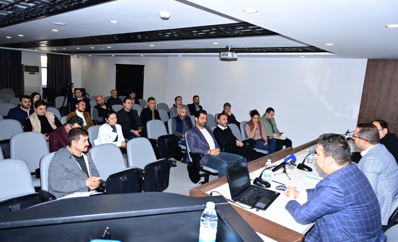 Müdür Erkış, yaptığı sunumla “İşletme Geliştirme Destek Proğramı”nı anlattı. Sunum sonunda katılımcıların soruları yanıtlandı.